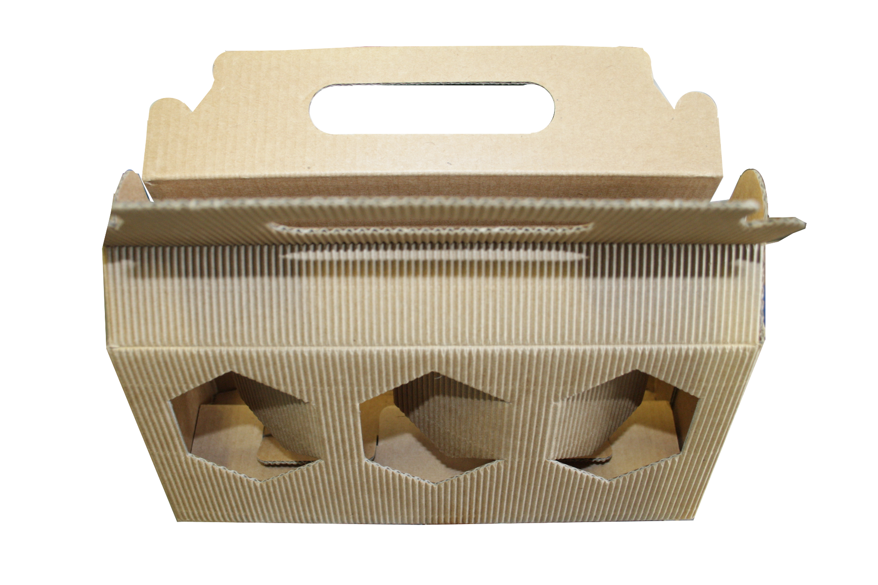 Présentoir en carton ondulé pour 3 pots de 385 ml