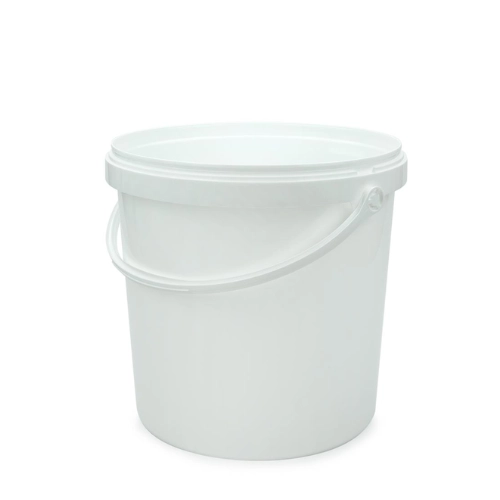 Seau plastique alimentaire de 10L (10 à 13 kg de miel), avec couvercle inviolable et anse métallique. Idéal pour stocker ou transporter le miel, le pollen ou du combustible apicole. Robuste, stable, facile à manipuler.