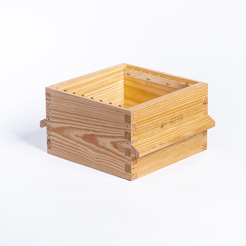Le système de ruche Warré a été développé pour imiter le mode de vie des abeilles sauvages en créant un habitat proche de celui que l’on trouve dans la nature. Il est conçu pour être utilisé avec des cadres de ruche à dimensions réduites pour favoriser un développement naturel des abeilles. Le corps de ruche Warré 8 est plus petit que les corps de ruche Dadant ou Langstroth.
