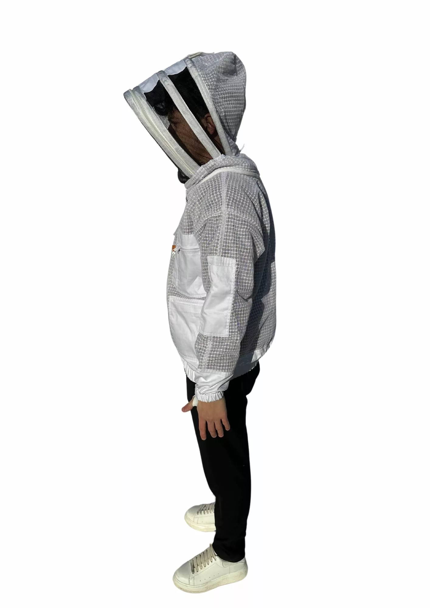 - Ventilation exceptionnelle : Totalement aéré, le blouson favorise une excellente circulation de l’air, évitant l’accumulation de chaleur pendant les travaux au rucher. Cela garantit que l’apiculteur reste à l’aise même par temps chaud.